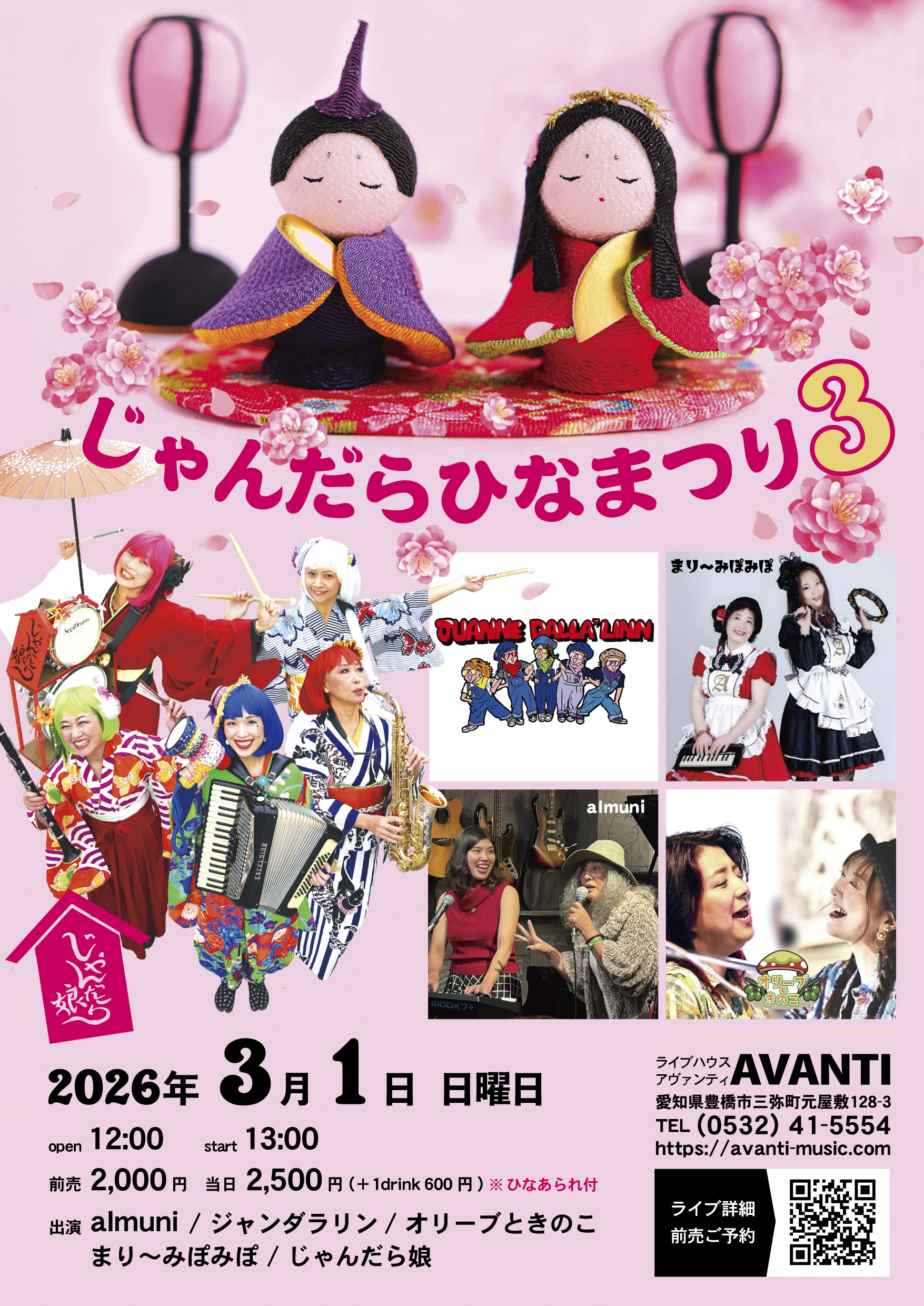 | 料 金 | 前売 2,000円 当日 2,500円(+1drink 600円) ※ひなあられ付 |